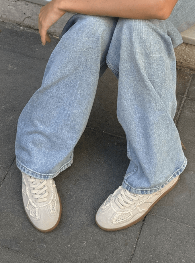 Crochet Cream Leather Sneakers