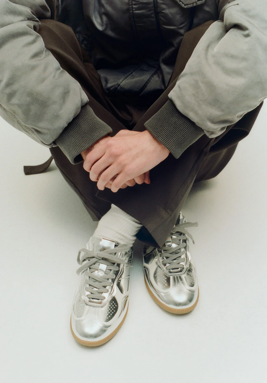 Rife Shimmer Silver Cream Leather Sneakers