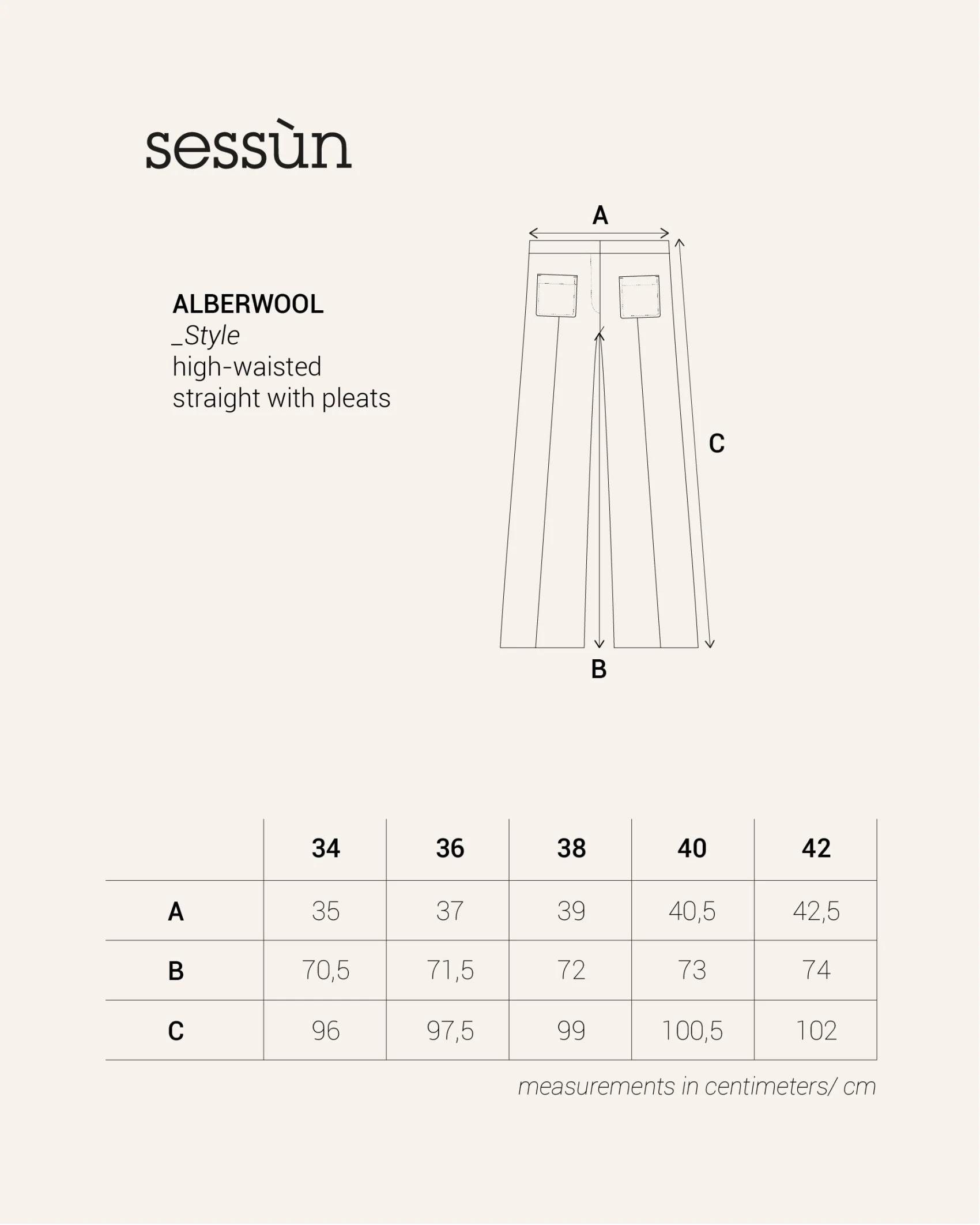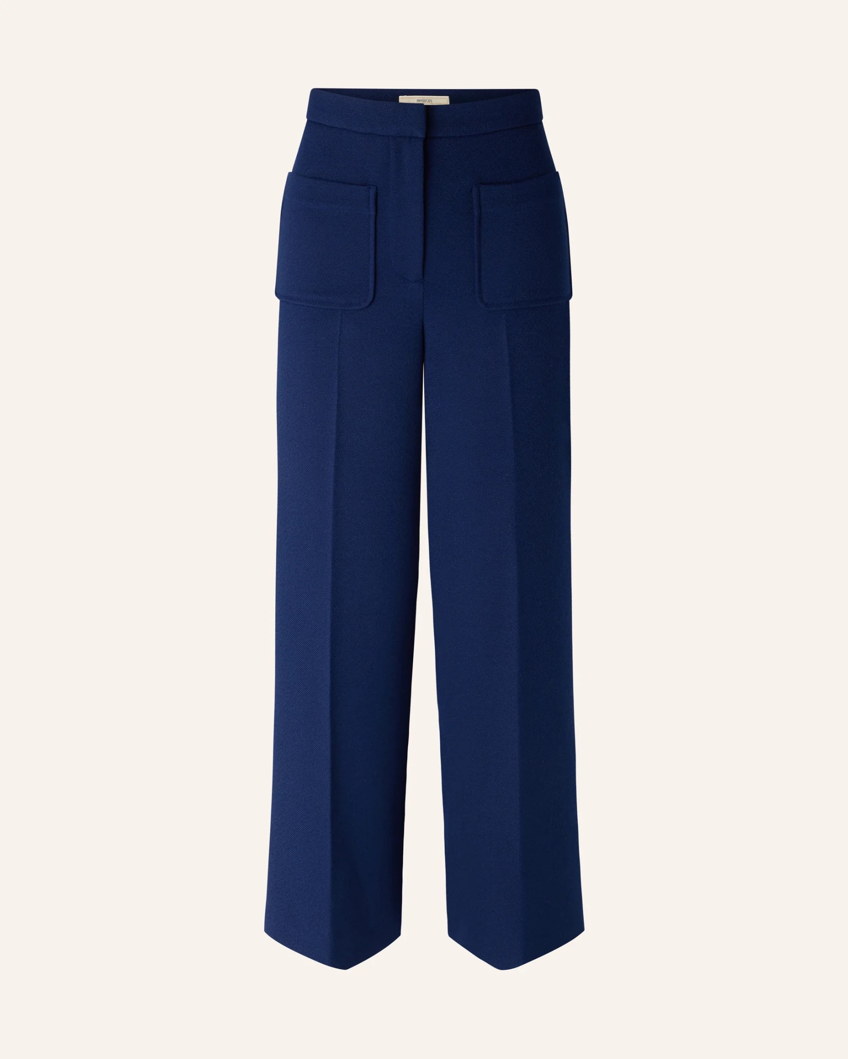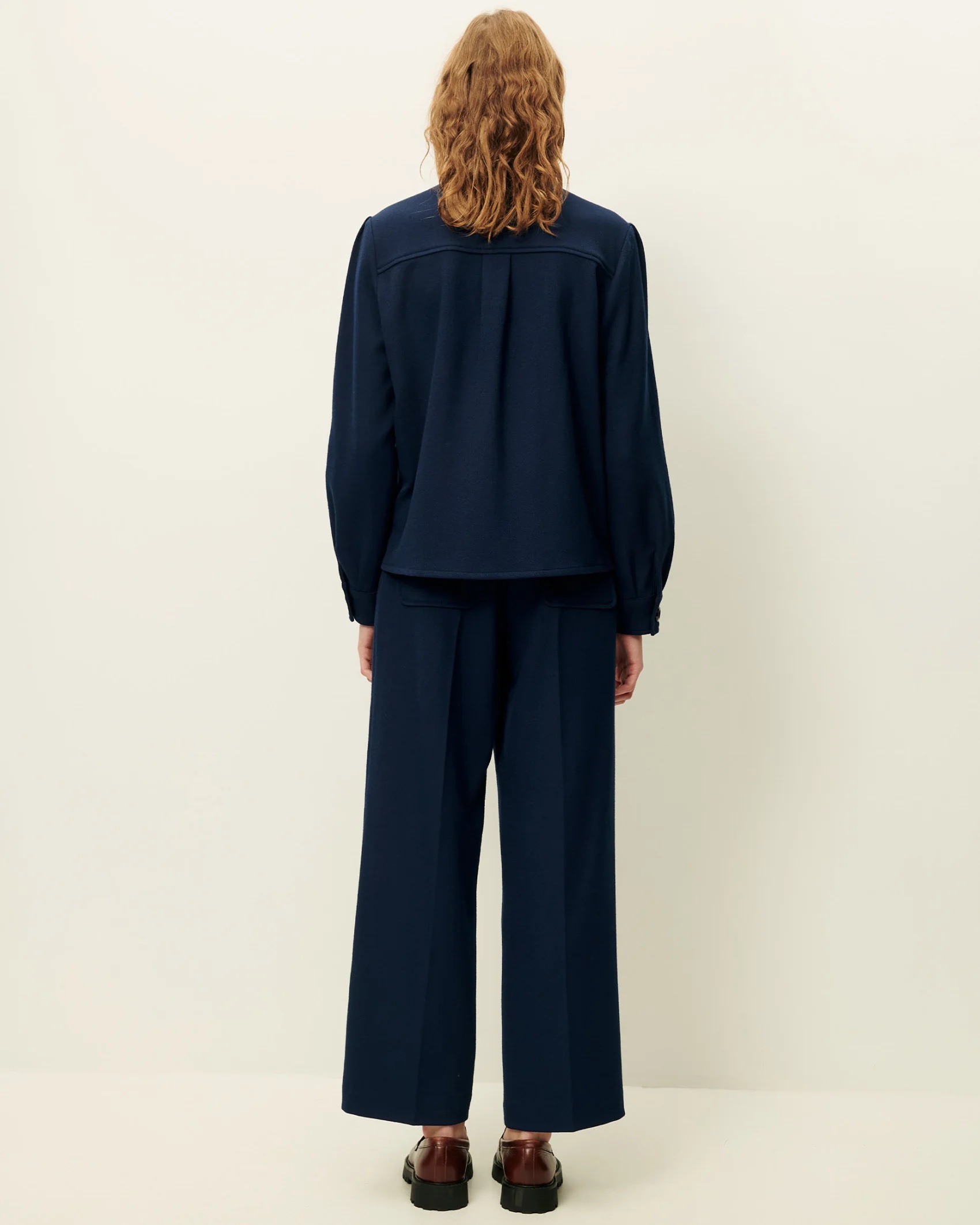 Straight-cut pants with accentuated pleats made from soft, flowing tricotine. Portuguese weave.