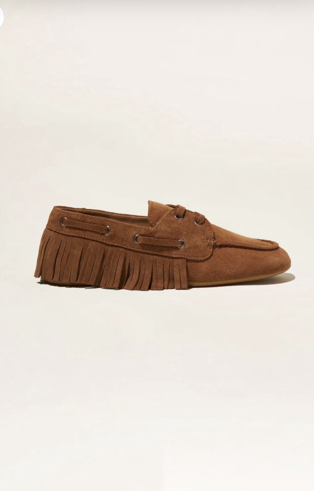 The side fringe and leather lace create a decorative detail that recalls the sporty heritage, while the rubber sole makes it perfect for every summer stroll, between docks and city.