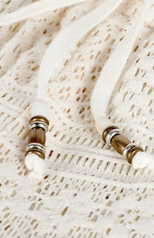 Limited Edition. The Banu trousers combine comfort and elegance with an original touch to add to your summer wardrobe. This wide-cut model with a high waist is pulled together at the waist by a colour-coordinated band that creates a very feminine ruffled effect. It is made from a soft, flowing, slightly sheer material with a modern lace effect, making it an essential piece for warm days. Pair with sandals and the matching shirt or a cream-coloured crop top.