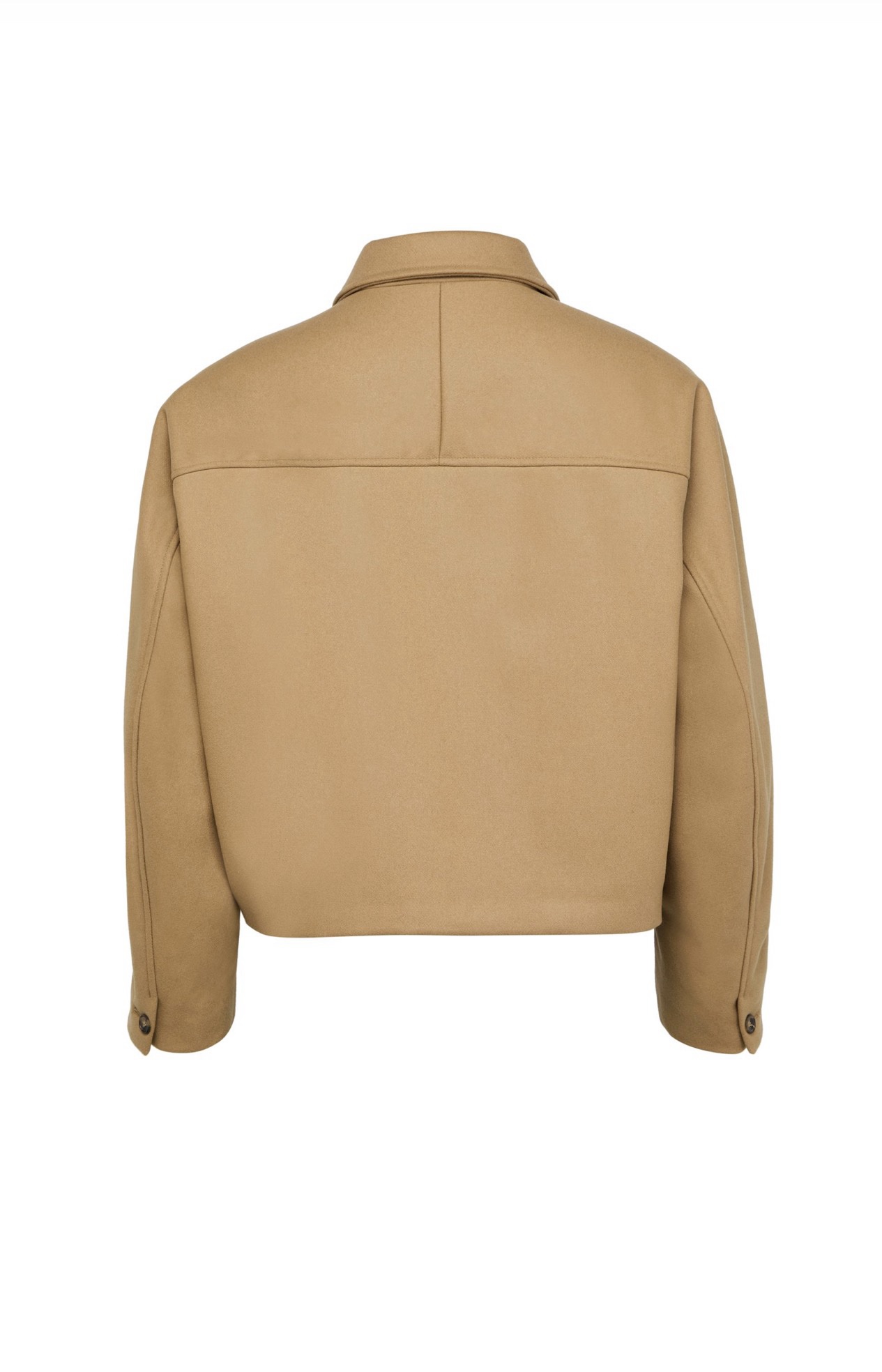Buttons on the front, logo appliqué, short side piped pockets, long sleeves, casual jacket.