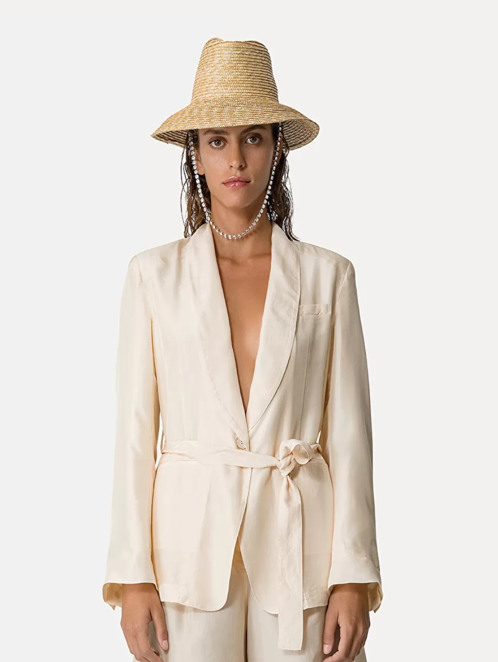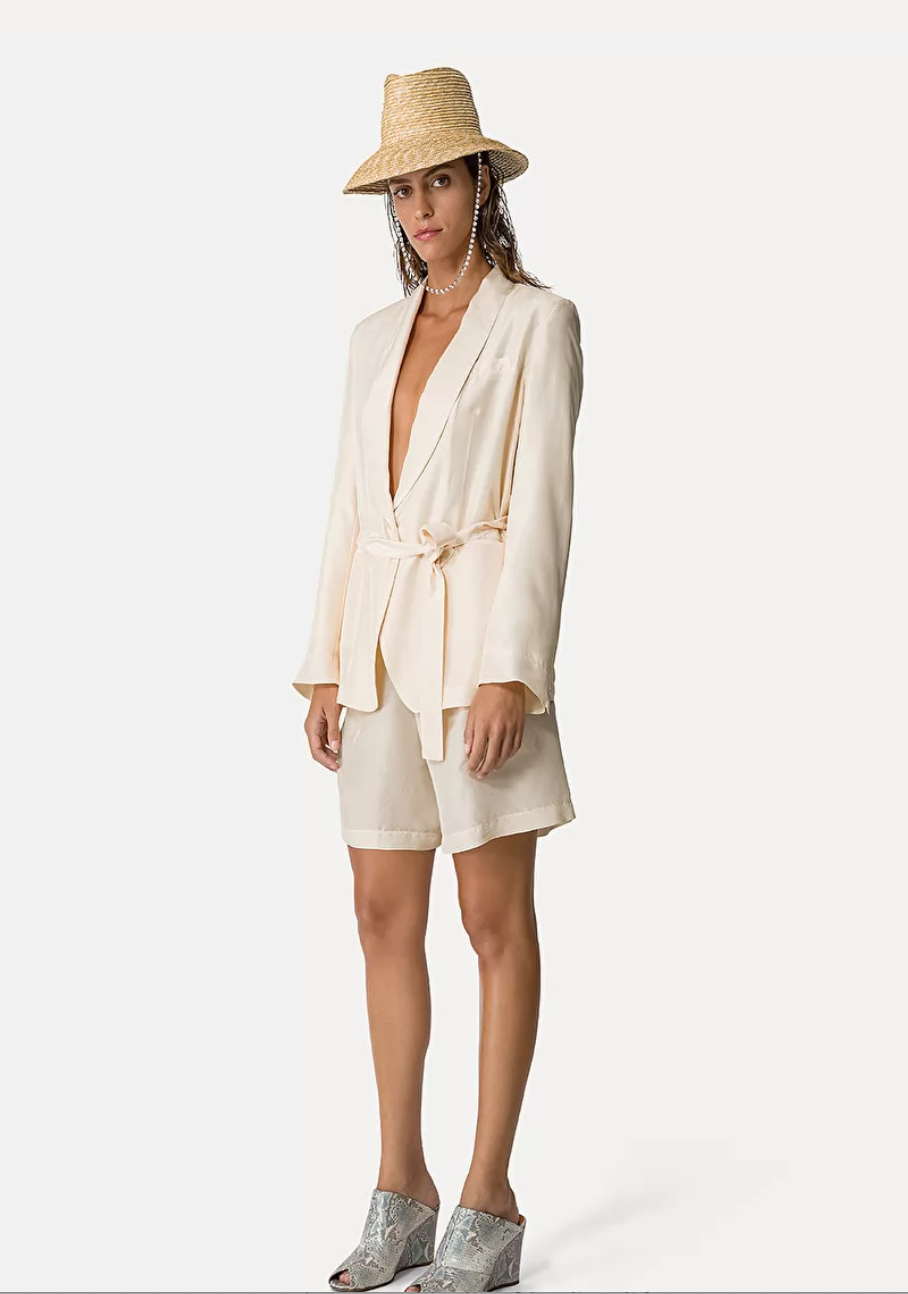 Belted Jacket Habotai Silk Avorio