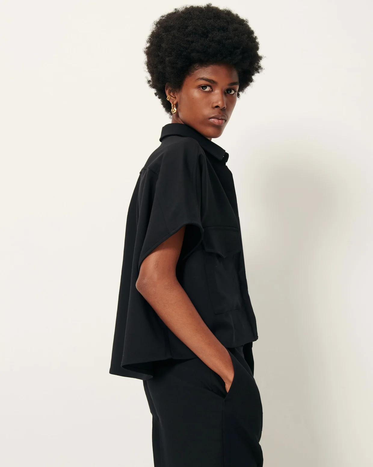 Short loose-fitting shirt in broken twill.