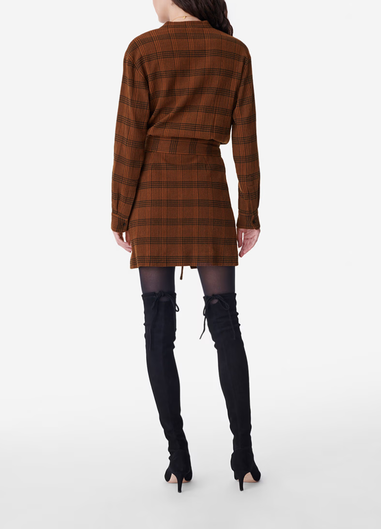 New for Autumn/Winter, the Blandine dress is elegant and versatile. This mid-thigh length piece with a sweetheart neckline is enhanced by the wrap-around opening in the underskirt. Made from cotton, this dress is easy to slip on for effortless style. Short checked cotton dress. Wrap-around. Sweetheart neckline. Long sleeves.