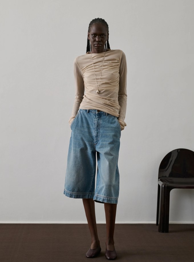 With its flared cut and fluid drape, the Boushra skirt embodies timeless elegance. A midi style with subtle volume, perfect for structuring a silhouette with lightness.