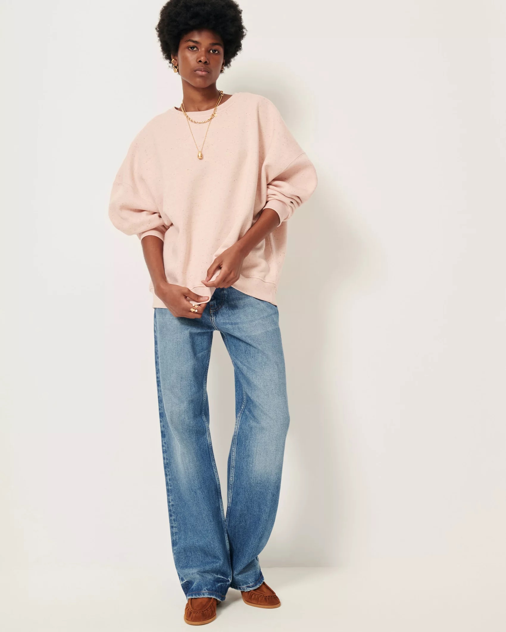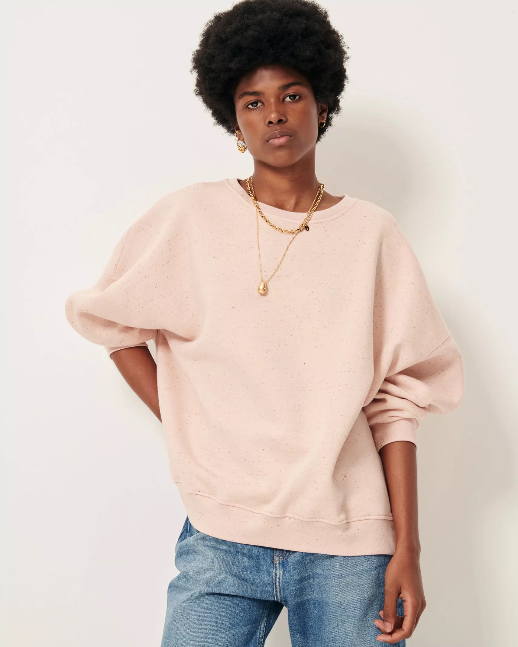 Oversized sweatshirt in mottled slub fleece, made in Portugal.