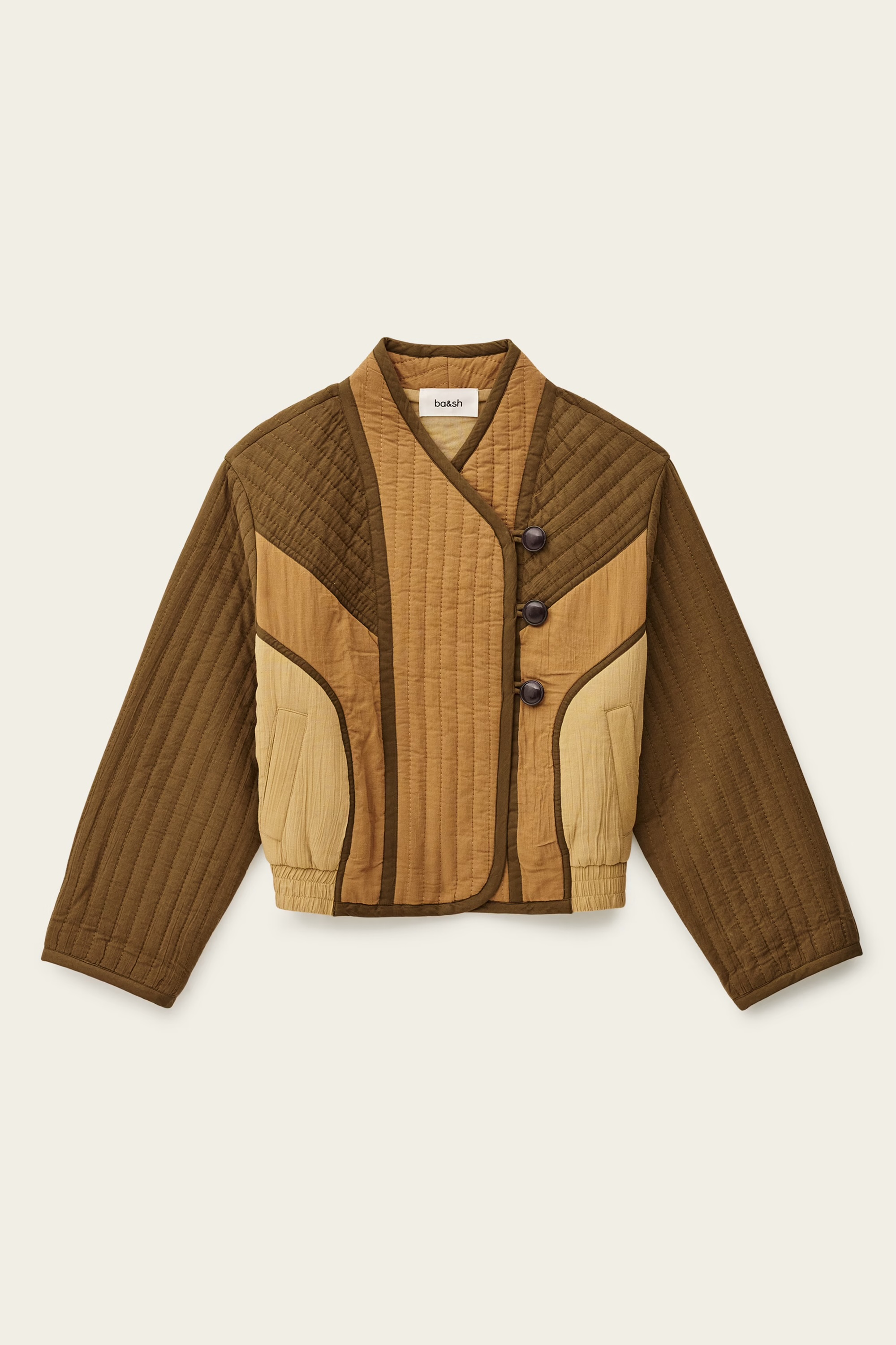 – Asymmetrical closure with three buttons at the front