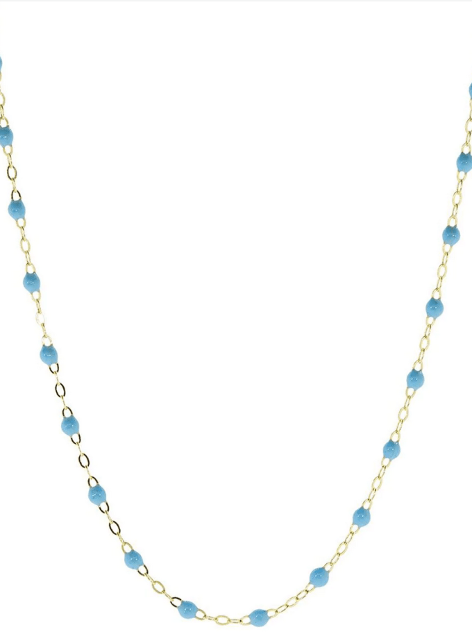 Gigi only uses the best materials, 18 carat gold, diamonds, and a lacquer chosen for its shine and quality. This high-end resin offers a rich variety of colors. The artisanal application of this wonderful material onto the yellow gold chain is a real art. It’s the result of an entire team and a technique developed by Alain Clozeau.