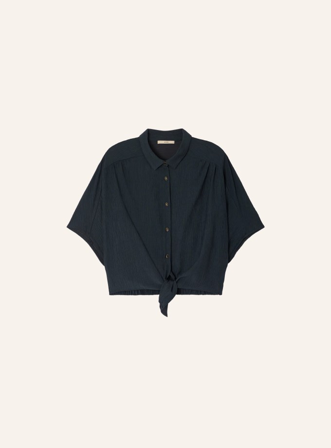 Concealed button fastening at the front and a decorative button at the base of the collar.