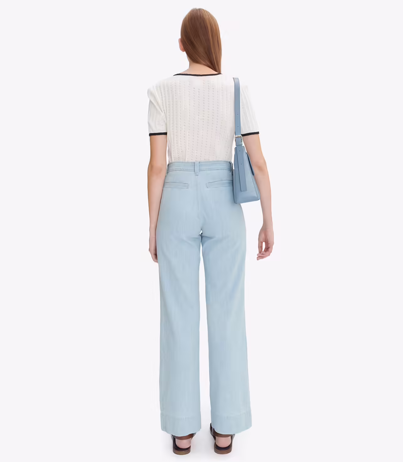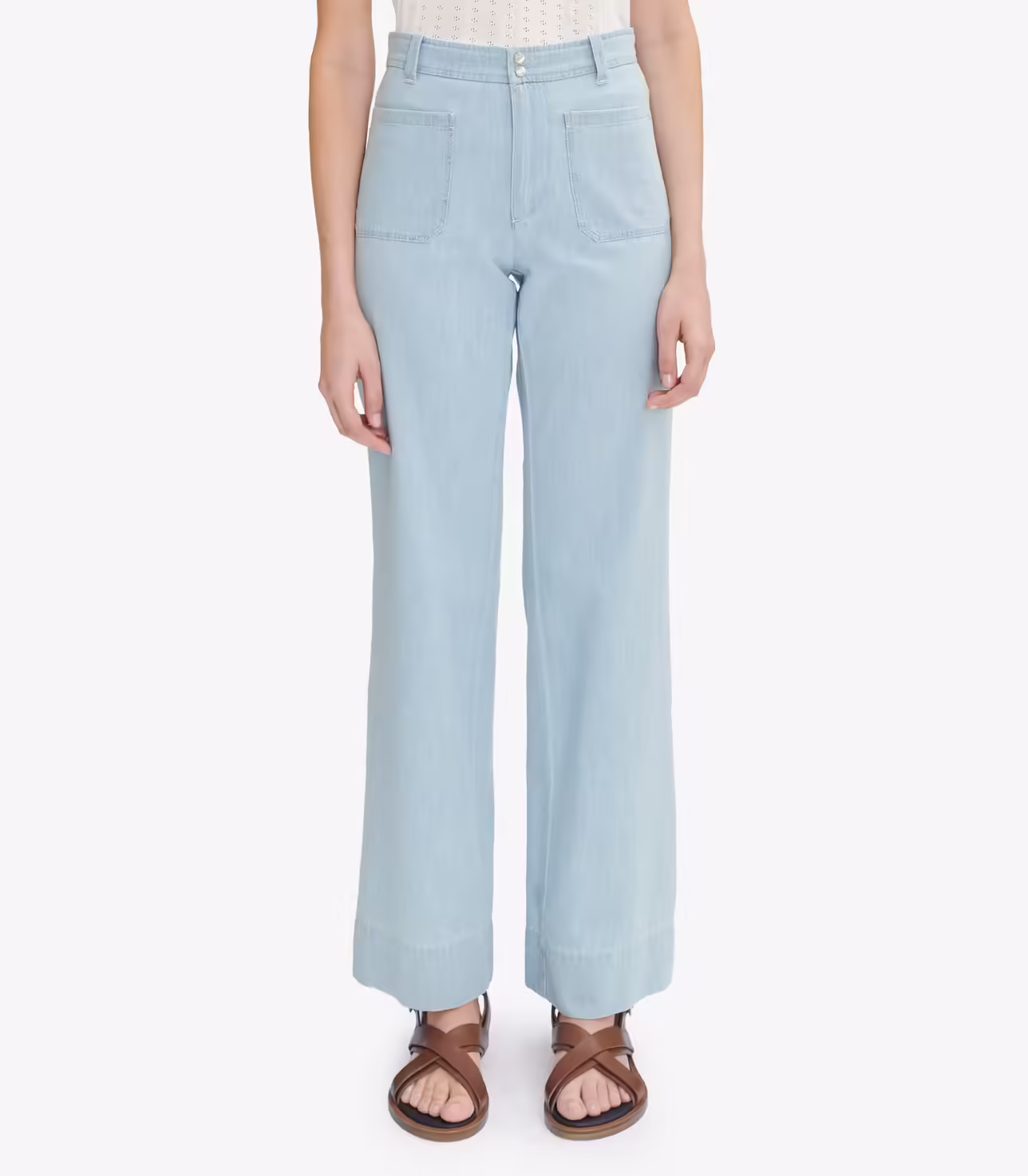 Jeans made from lightweight, heavily washed organic denim with a flared leg.