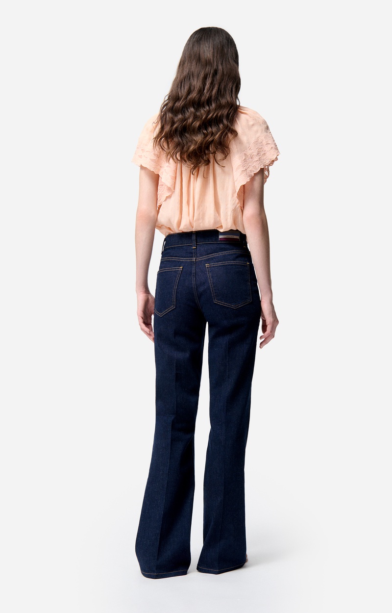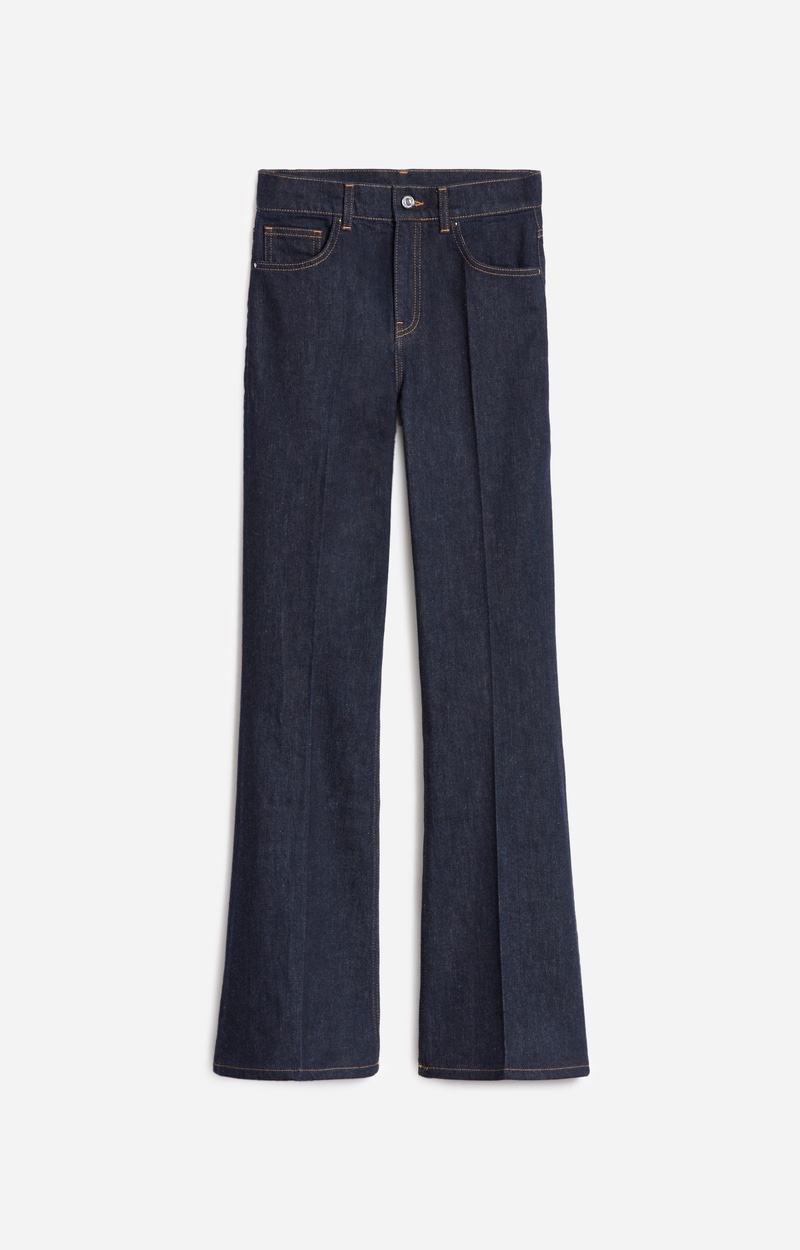 The Ethan jeans have an elegant flared cut, inspired by vintage flair but still modern. The high, fitted waist elongates the silhouette. Made from white cotton, they can be easily worn with a romantic shirt for a casual look or a blazer for a more sophisticated outfit. The long length pairs perfectly with heels for a slimming effect.