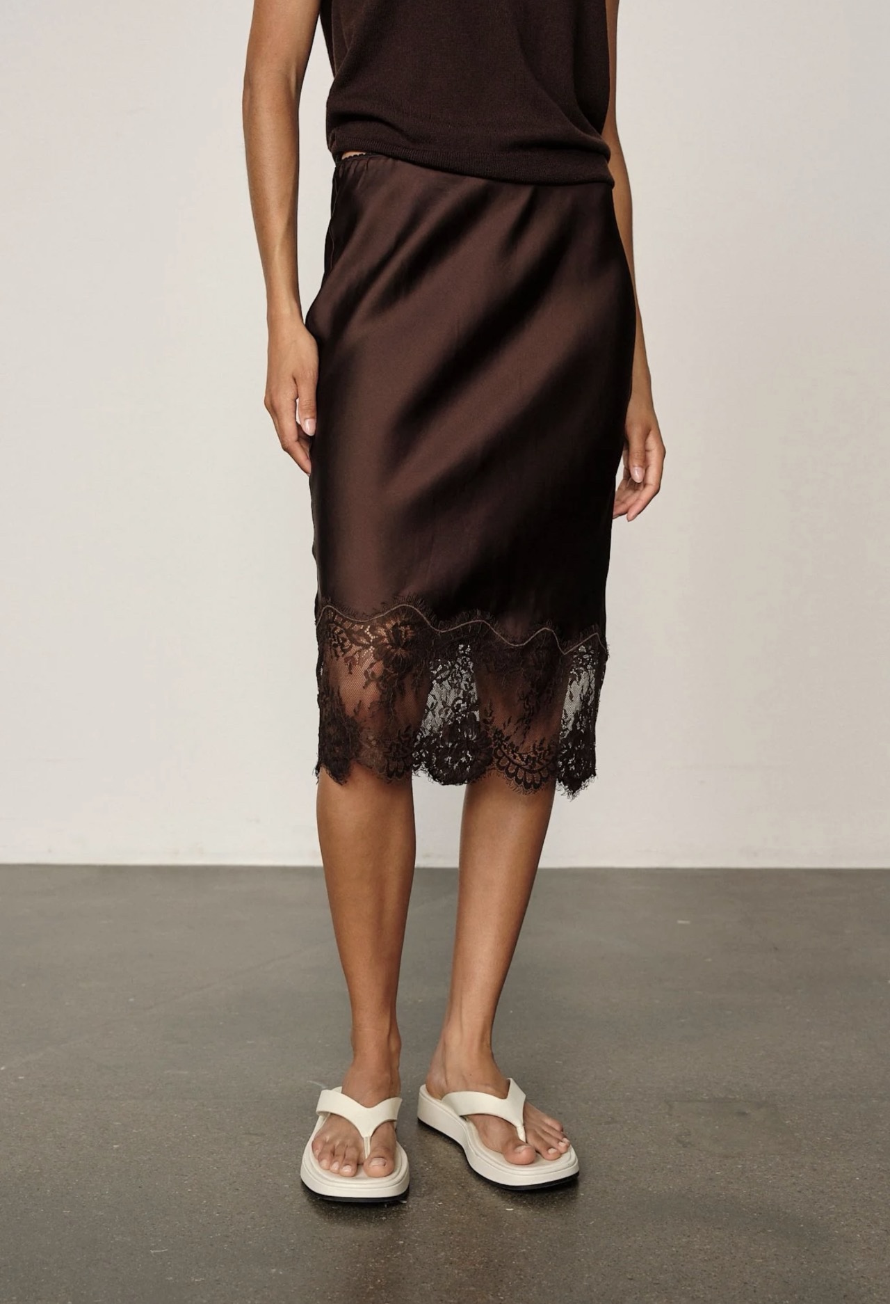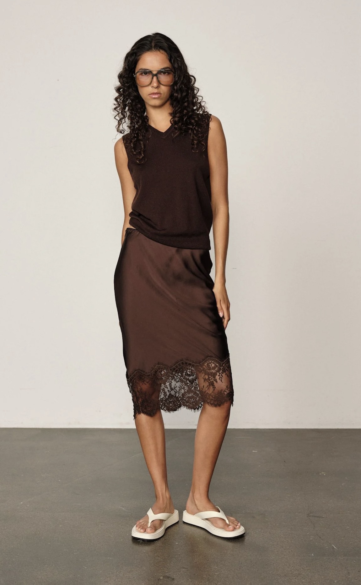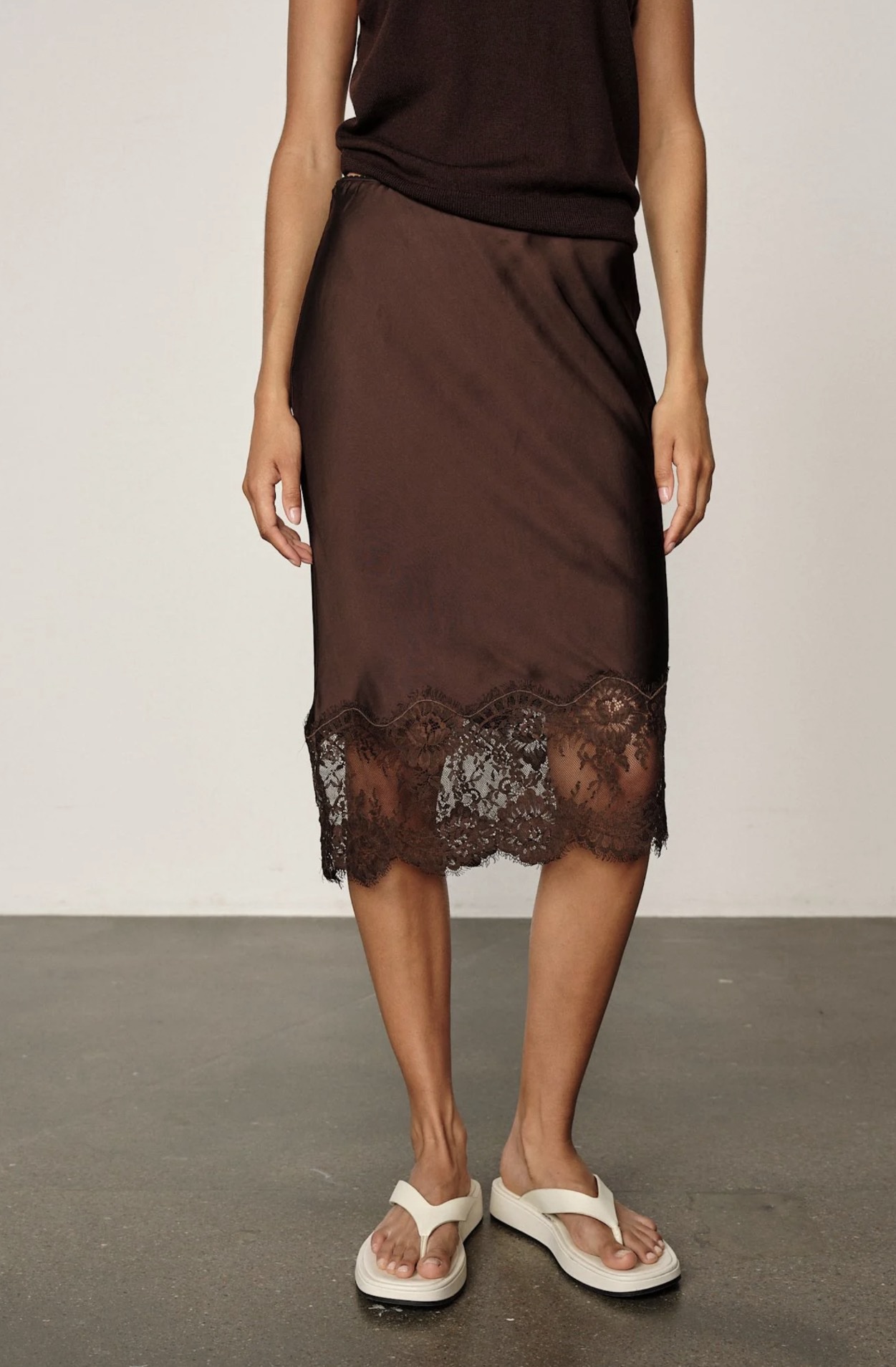 An elegant skirt combining femininity and simplicity. Fluid silhouette soft viscose/rayon mix refined lace edges that make it timeless.