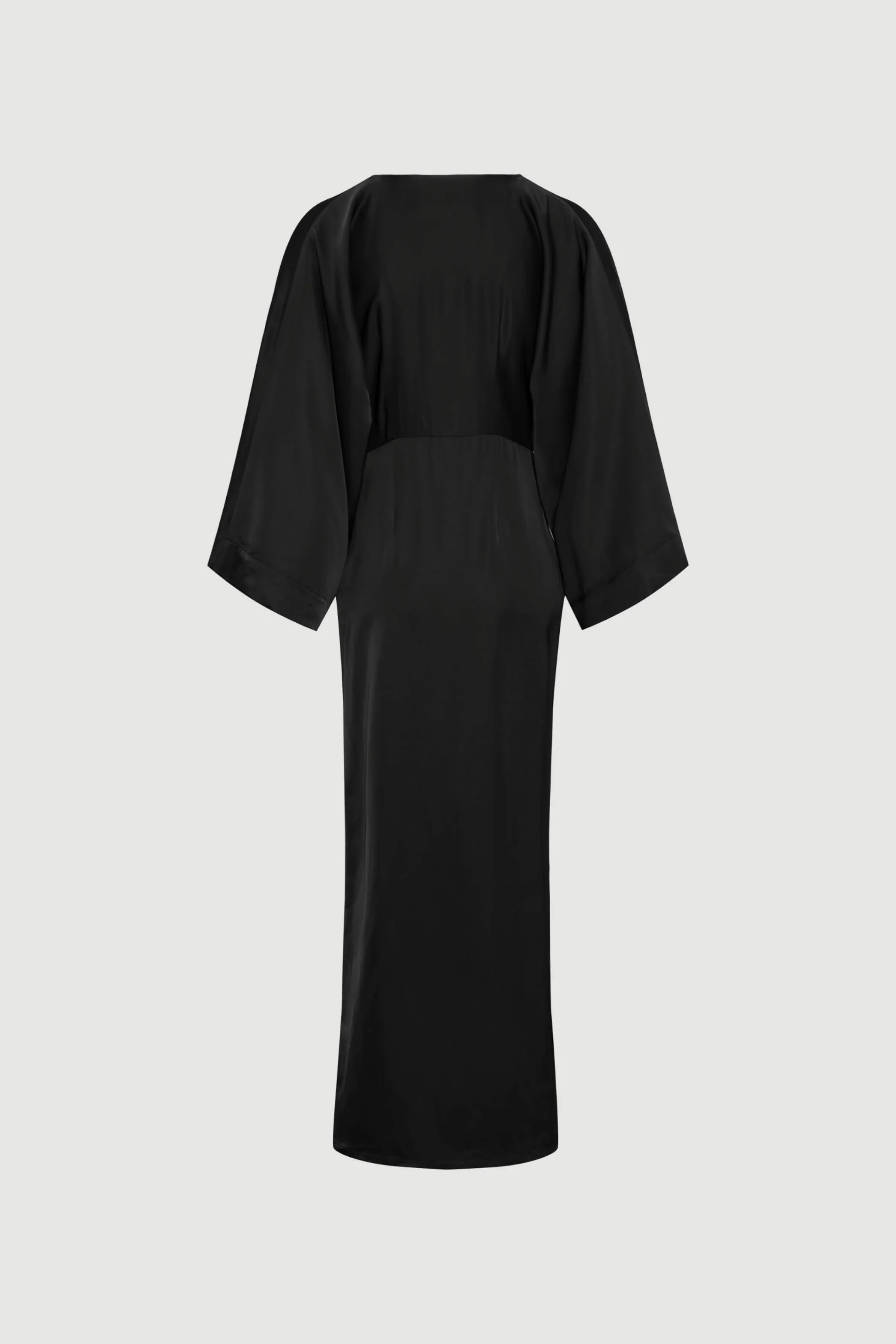 Meet the Honor dress, designed with a flattering V-neck and a cinched waist that enhances your silhouette. The draped fabric adds beautiful texture, while the maxi length and long sleeves offer elegance and sophistication. Available in classic black and soft vanilla, this dress is perfect for both day and evening events.