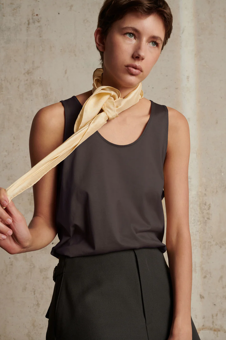 Mercerised cotton tank top. Straight loose cut.