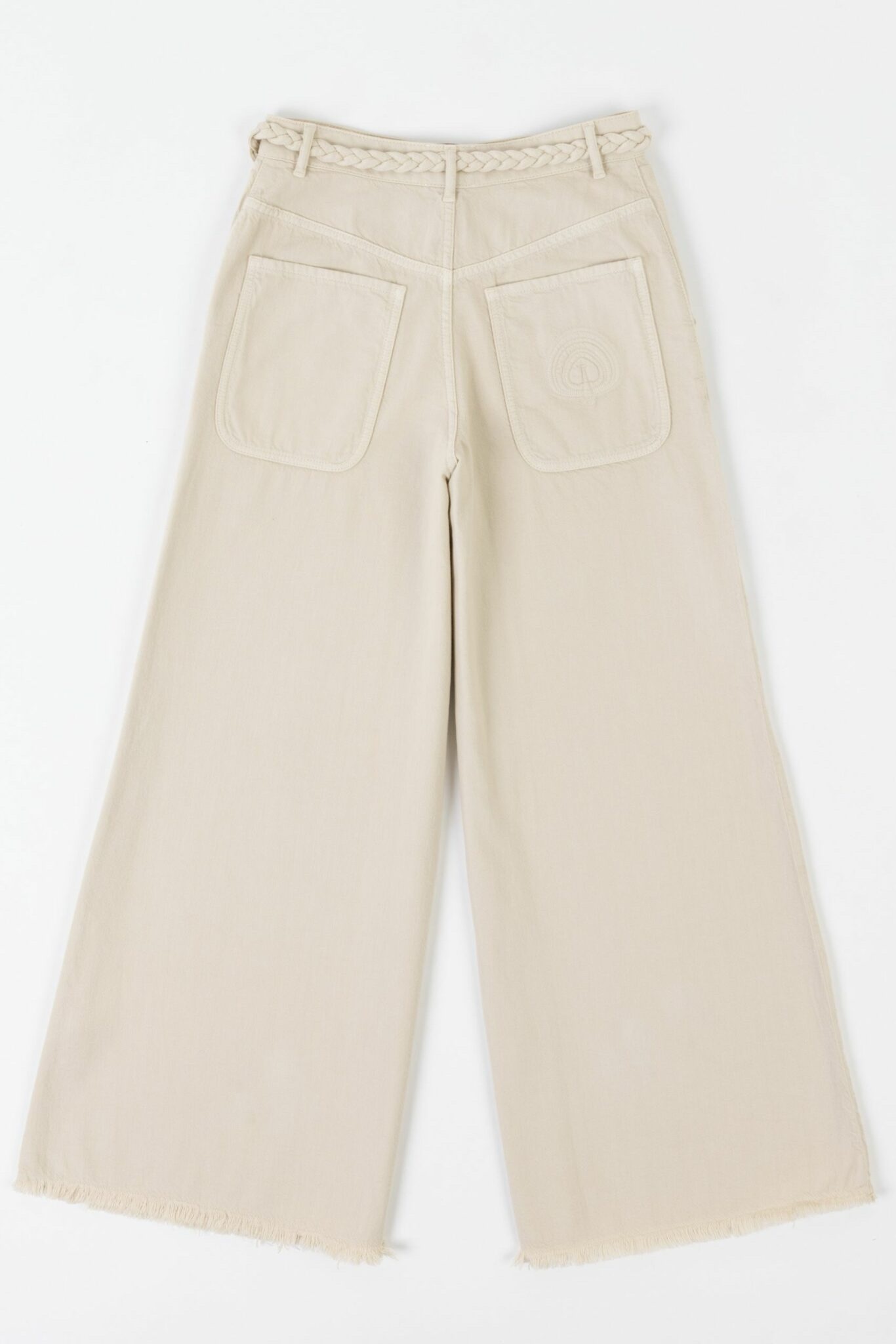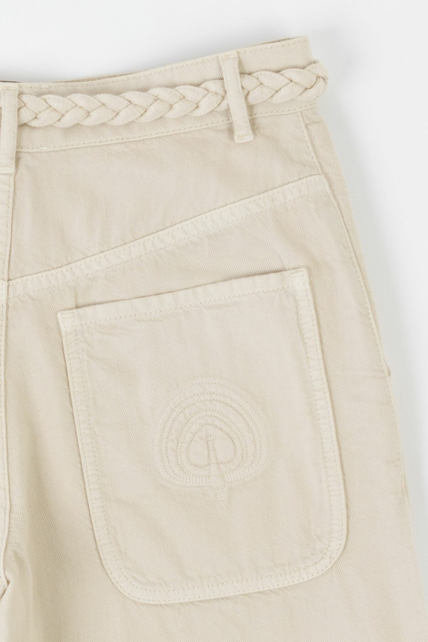 As always, at Happy Haus, the details are thought out like the work of the pockets, one on the back is embroidered with the peacock Happy Haus, the removable belt in the same fabric, the wooden button. The sand color is elegant and easy to match with your tops and jackets.