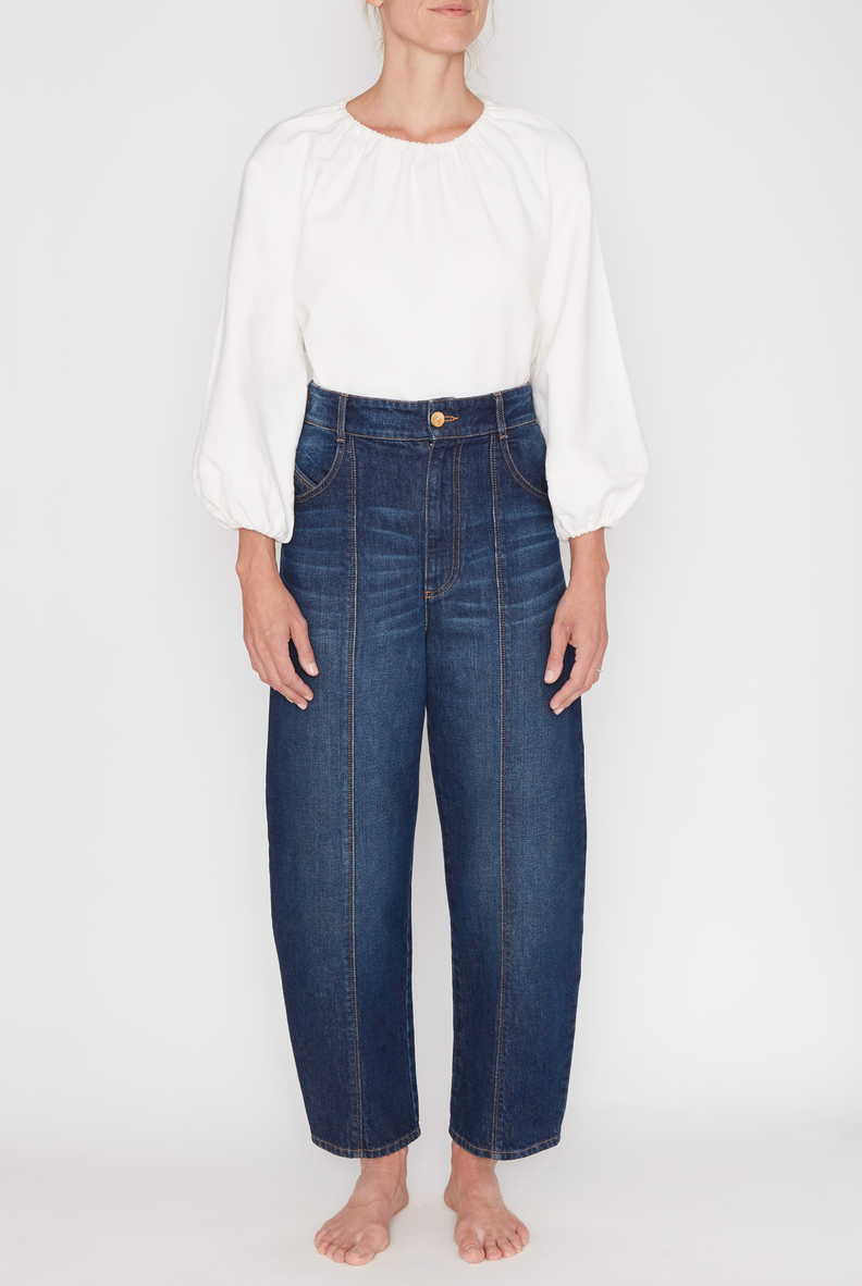 The Fleur pants are the ideal pants to wear every day. Its straight, slightly cigarette cut is easy to wear, advantageous, and relatively simple to match. It has nice details, such as its flower-shaped back pockets.