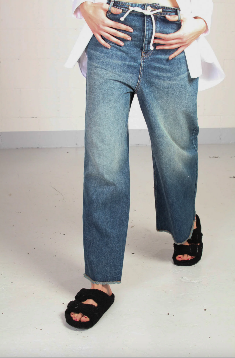 The Oversize Pants are the flagship model. Made of cotton, they have a flared cut, a regular length, a wooden button for the front closure and five pockets. Wear as you like: high waist, or low waist by taking a size above your usual size!
