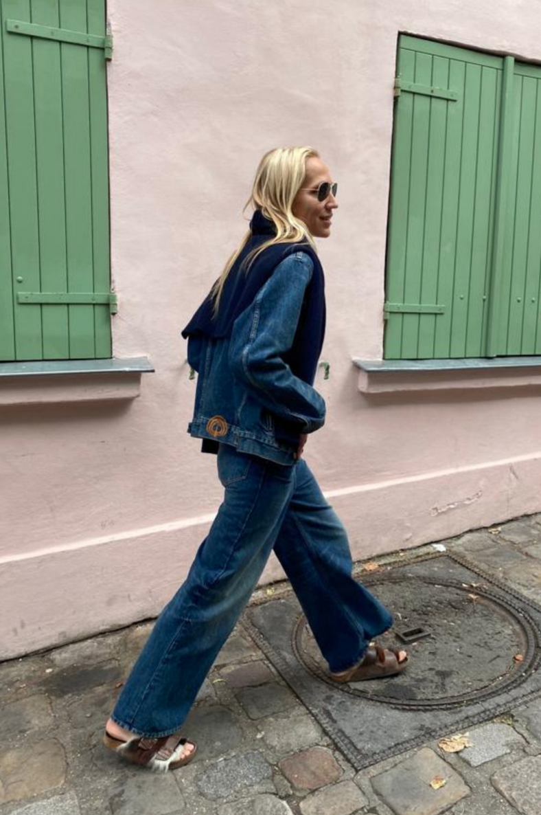 Our new Peacock pants take up the codes of our oversize trousers. High-waisted, in this beautiful 5-year “dirty” wash, they elongate the silhouette and offer beautiful details at the back, such as our embroidered peacock on the waistband. Made from a thick denim fabric, these pants are both chic and causal, depending on how you accessorize them.