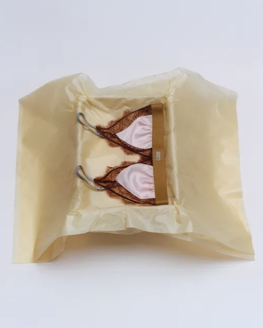 Love Lace triangle bralette in light pink The bralette is crafted from a soft and lace fabric that feels smooth against your skin This unpadded bralette provides light support, ensuring a comfortable yet secure fit Composition: 57% Polyester, 43% Polyamide
