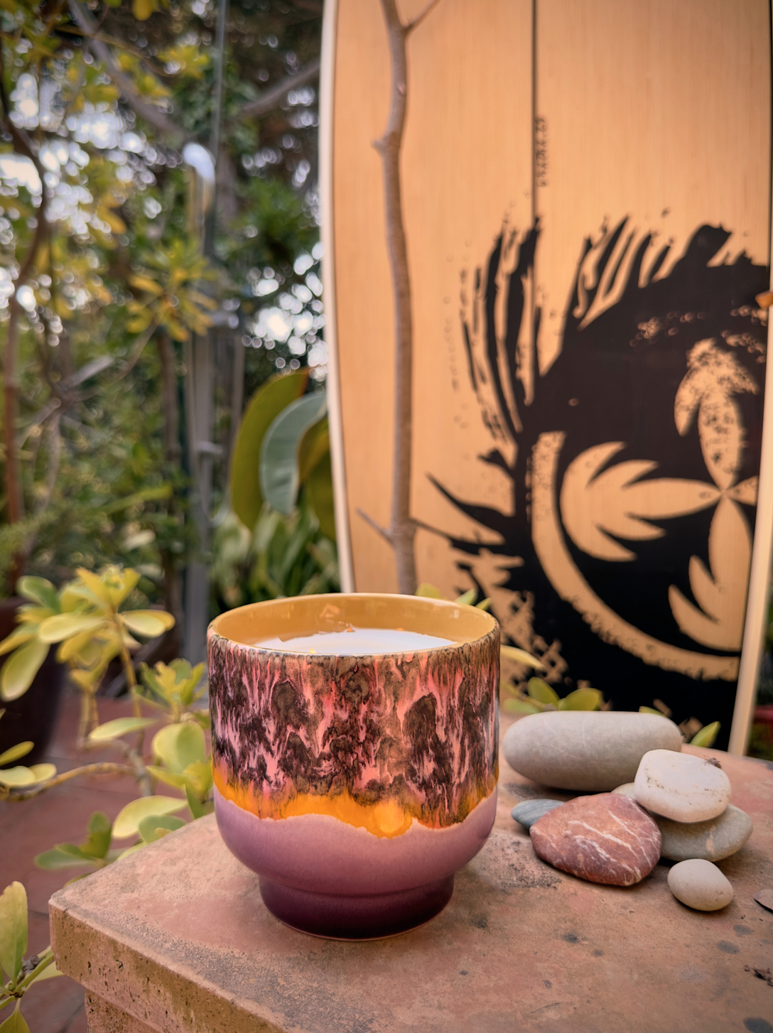 Light the Cape Town scented candle and enter a land where rich flora and wildlife coexist with vibrant city life. The fresh scent of sage evokes the untamed beauty of the cliffs and coastal paths. Delicate rose petals bring a hint of the city’s lush gardens. The warm, earthy notes of sandalwood and cedarwood capture the essence of Cape Town’s surf culture and stunning landscapes. A hint of balsam rounds out the fragrance, reflecting the sophistication of the city’s vibrant wine bars. This aromatic blend brings the captivating soul and rich diversity of Cape Town’s aesthetic into your home.