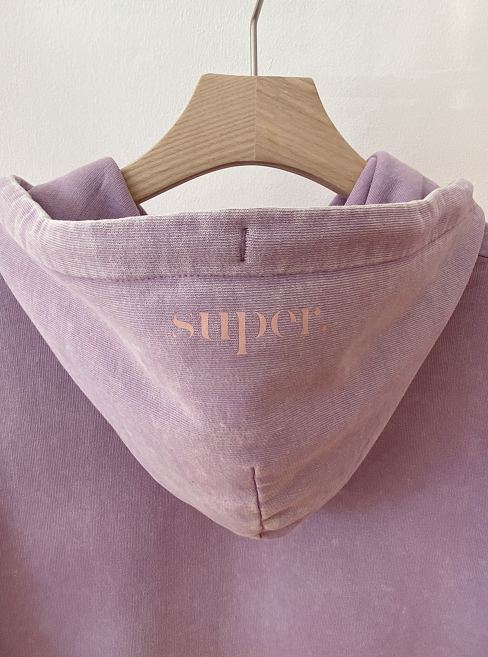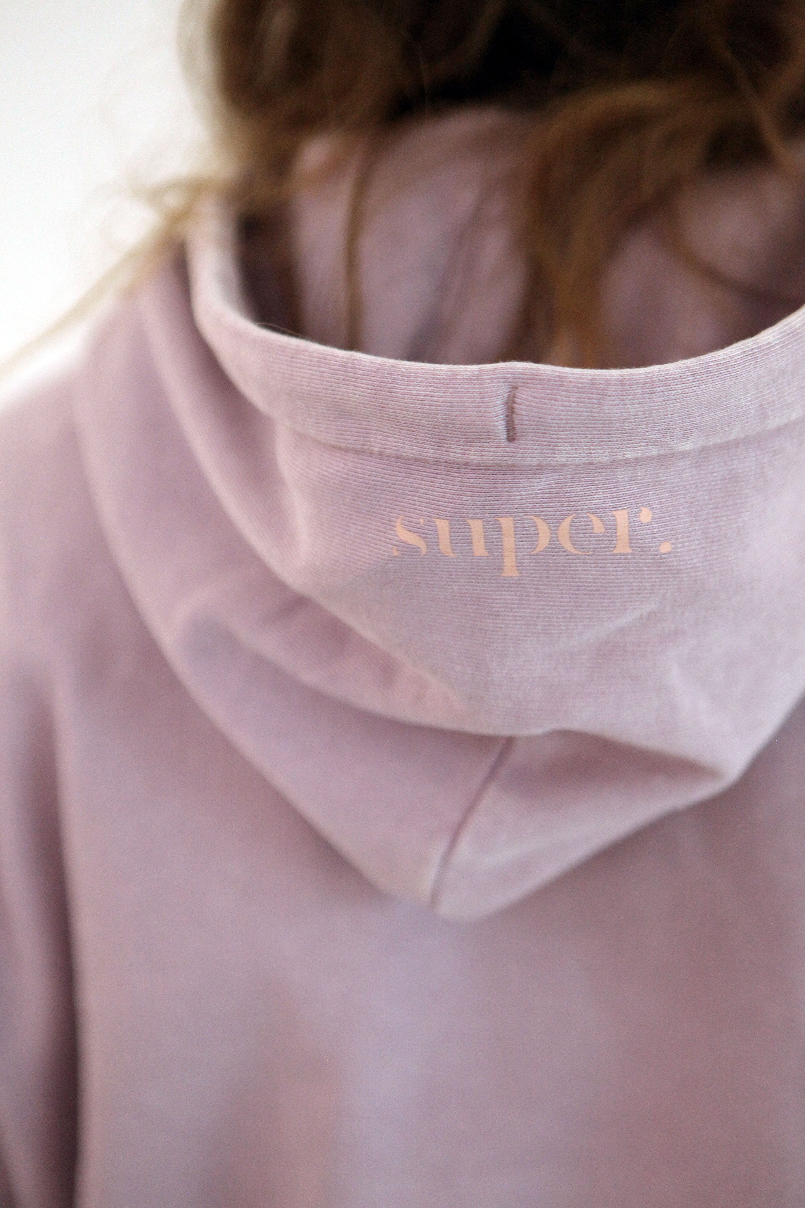 We love the soft organic cotton hoodie with print on the hood in soft peach. Fair produced in EU. For oversized look go one size up.