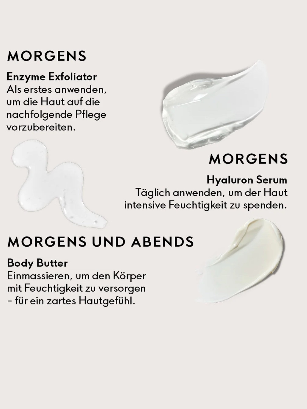 Hyaluron Serum: Aqua/water/eau, pentylene glycol, sodium hyaluronate, citric acid, parfum (fragrance).