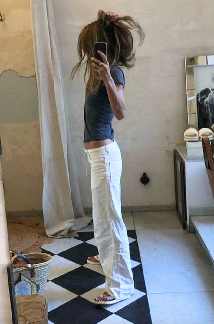 The Oversize Pants are the flagship model. Made of cotton, they feature a flared fit, regular length, wooden button front closure and five pockets. Wear as you like: high waist, or low waist by taking a size above your usual size!