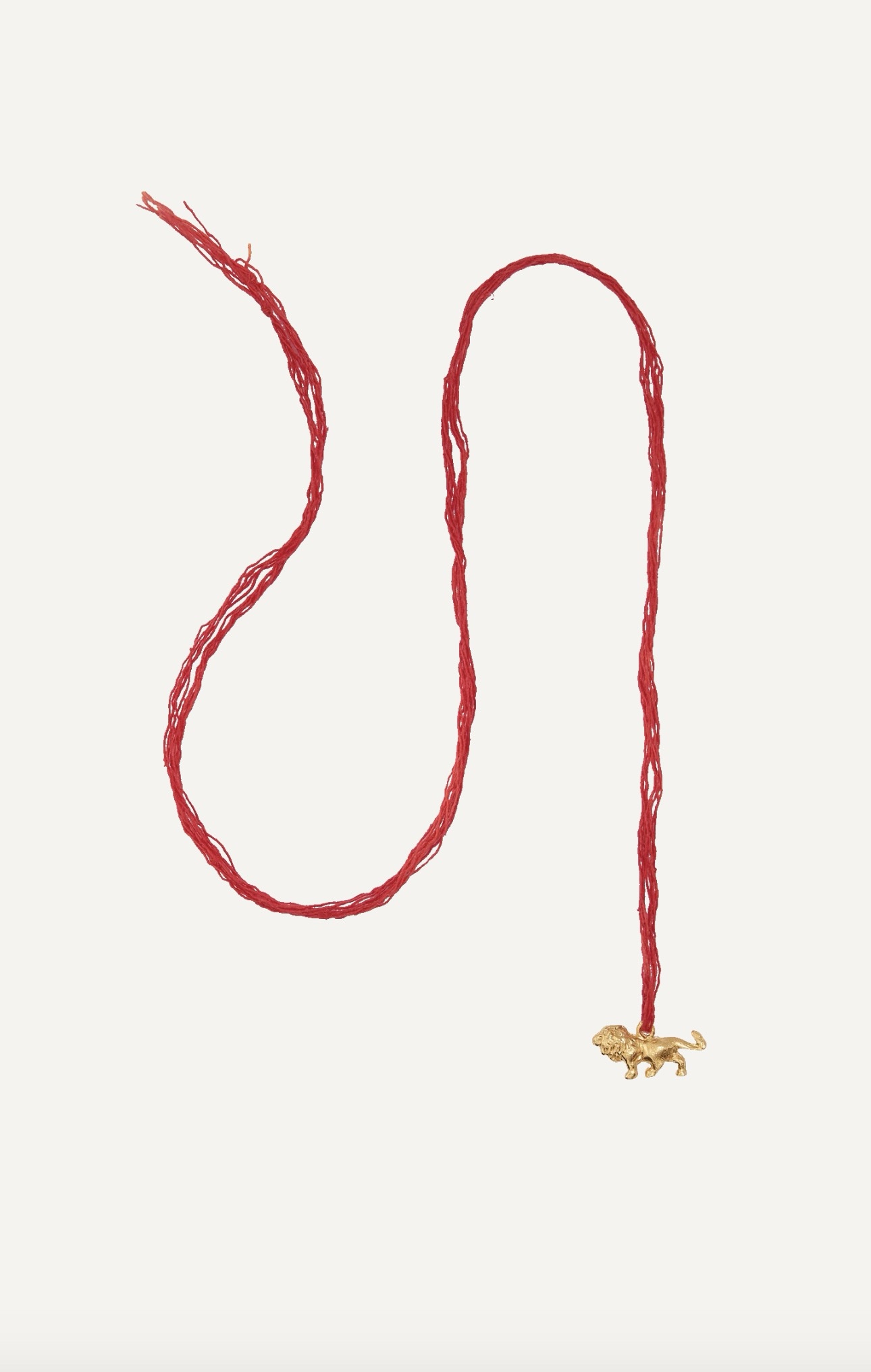 The Tale of the Lion Necklace is a miniature molten talisman, to bring you strength and courage on all of your adventures. The molten, textured lion motif is cast in recycled bronze and plated in Alighieri’s signature 24kt gold-plating in the UK. It is threaded with a spiritual red Indian cotton string.